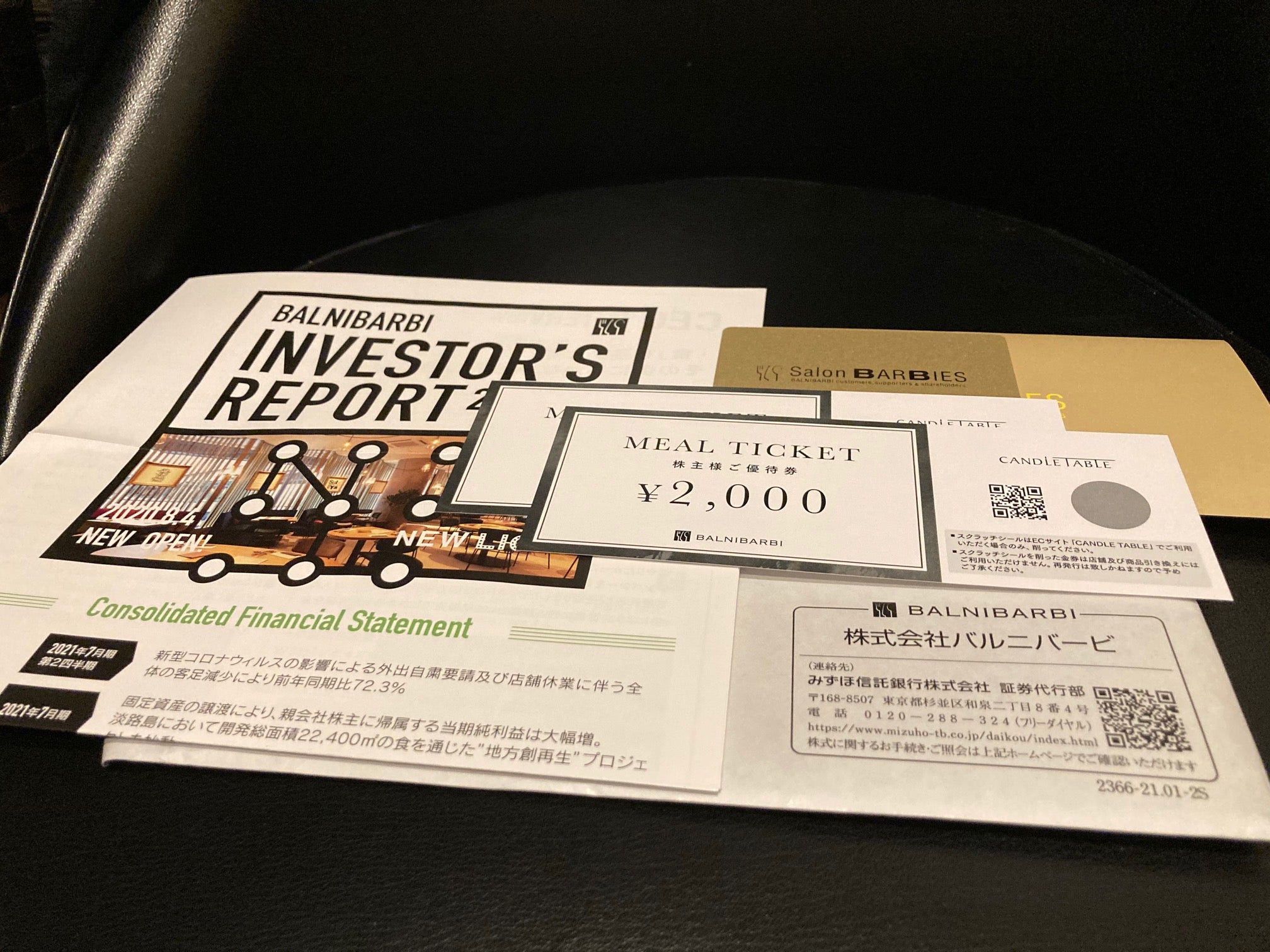 バルニバービは株主優待制度を実施しており、1月末・7月末に単元株を保有する株主に対して1,000円分の優待券を進呈していますので、配当優待利回りは約2.70%となります。なおこの他に長期優遇制度として、店舗での割引や限定のイベントに参加出来るメンバーシップ制度が用意されています。