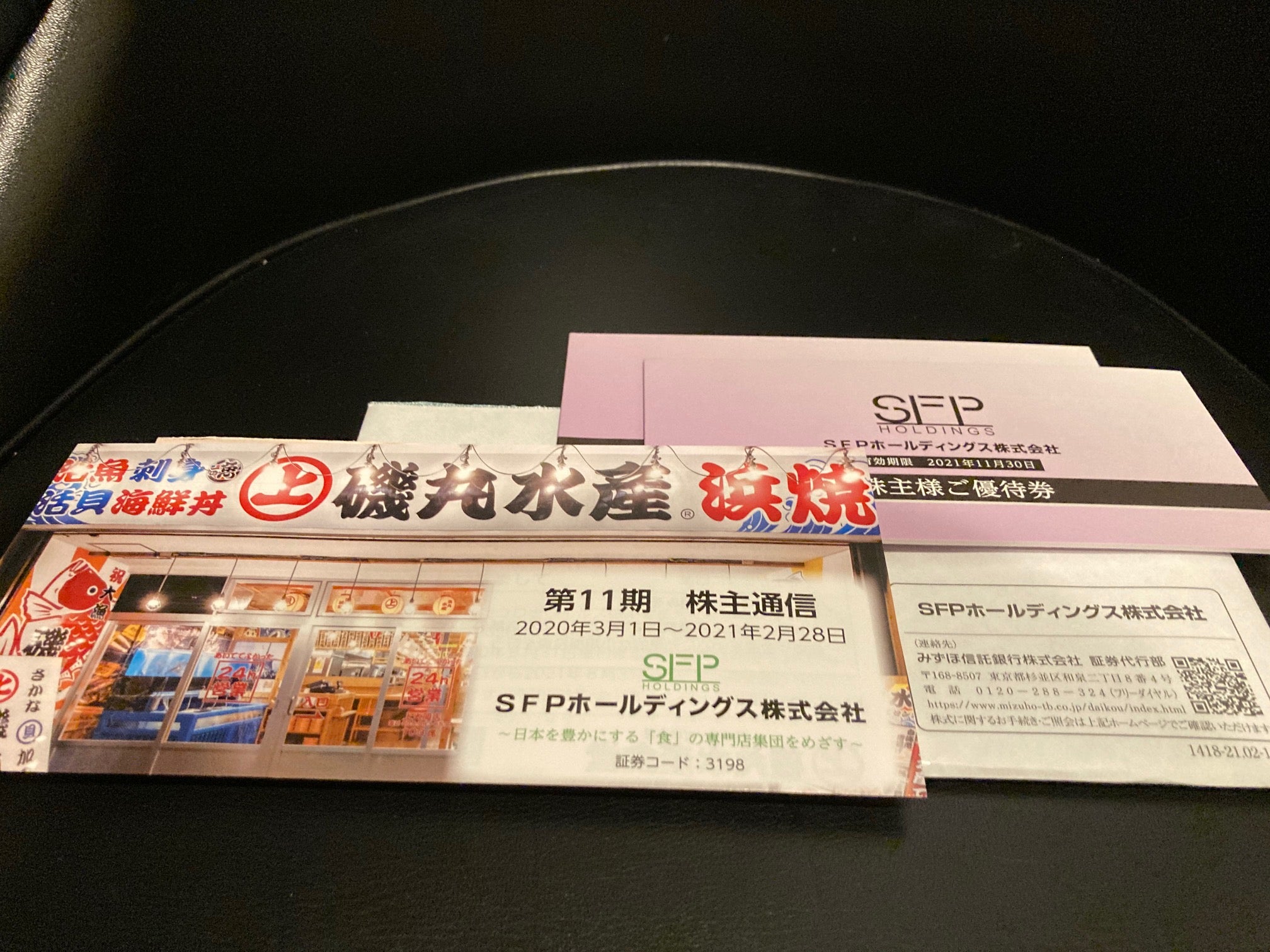 SFPホールディングスは株主優待制度を実施しており、2月末・8月末の単元株主に対して、それぞれ4,000円分の食事券を進呈していますので、配当優待利回りは約5.64%(無配前提)となります。