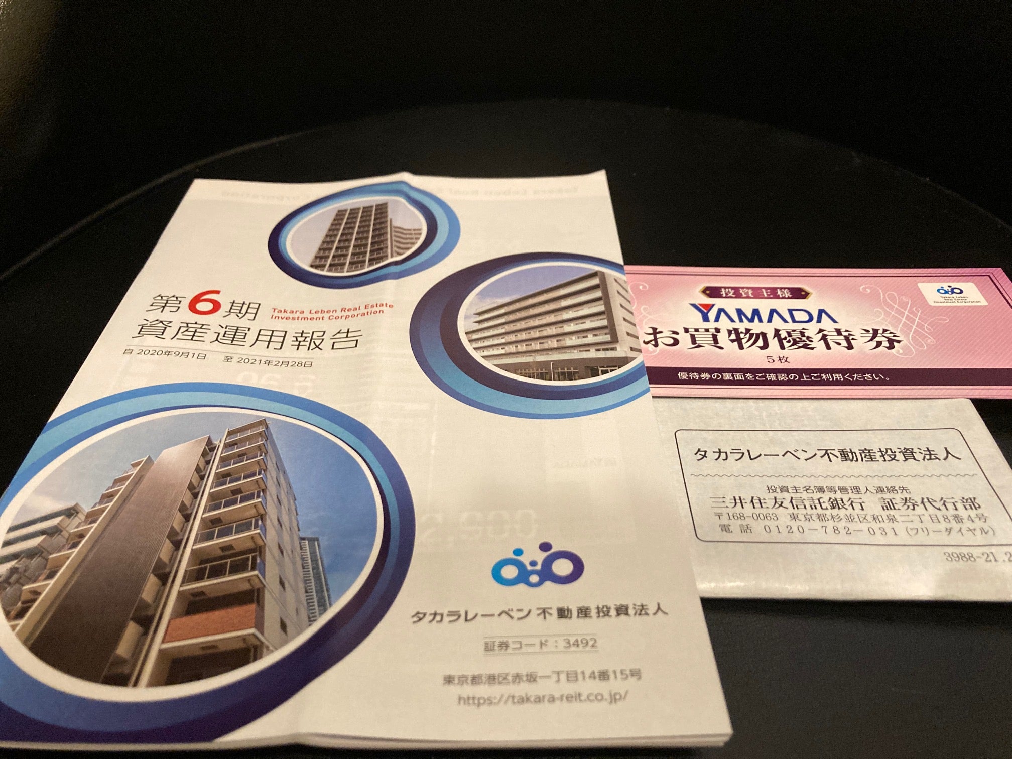 タカラレーベン不動産投資法人は投資主優待制度を導入しており、2月末・8月末に10単元以上を保有する株主に対して、2,500円分のヤマダ電機優待券を進呈しておりますので、10単元保有時限定で配当優待利回りは最大で約5.28%となります。