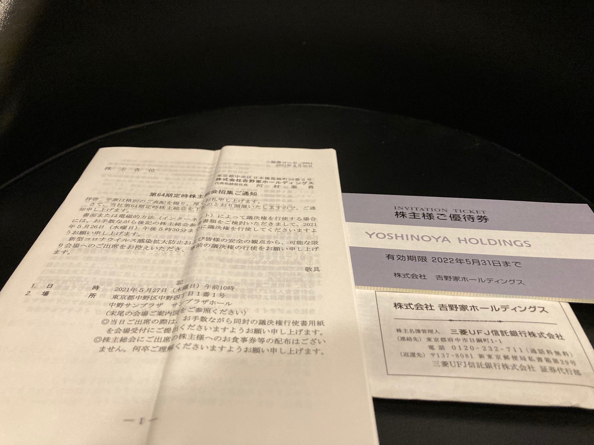 吉野家ホールディングスは株主優待として、2月末・8月末に100株以上を保有する株主に対して3,000円分の食事券を進呈しておりますので、配当優待利回り(無配の前提)を算出した場合、約2.85%となります。