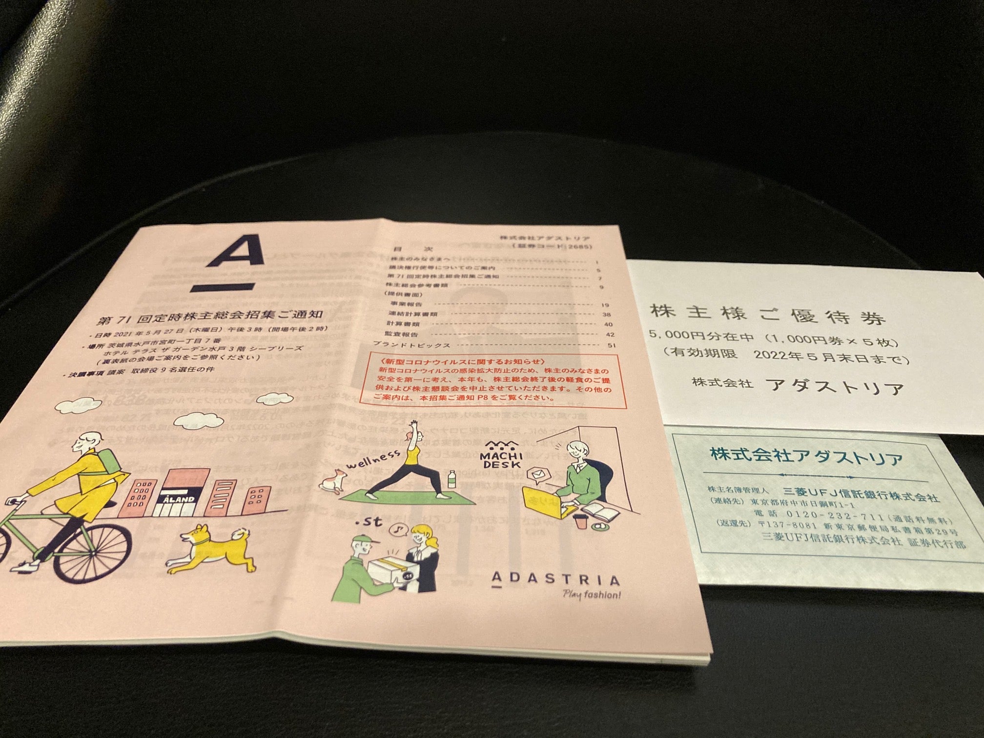 アダストリアは株主優待制度を実施しており、単元株を保有する2月末の株主に対して、3,000円分のお買い物券を進呈しておりますので、配当優待利回りは約3.80%となります。なお、2年超の長期保有で優待額が5,000円になるので、その場合の同利回りは約4.75%となります。