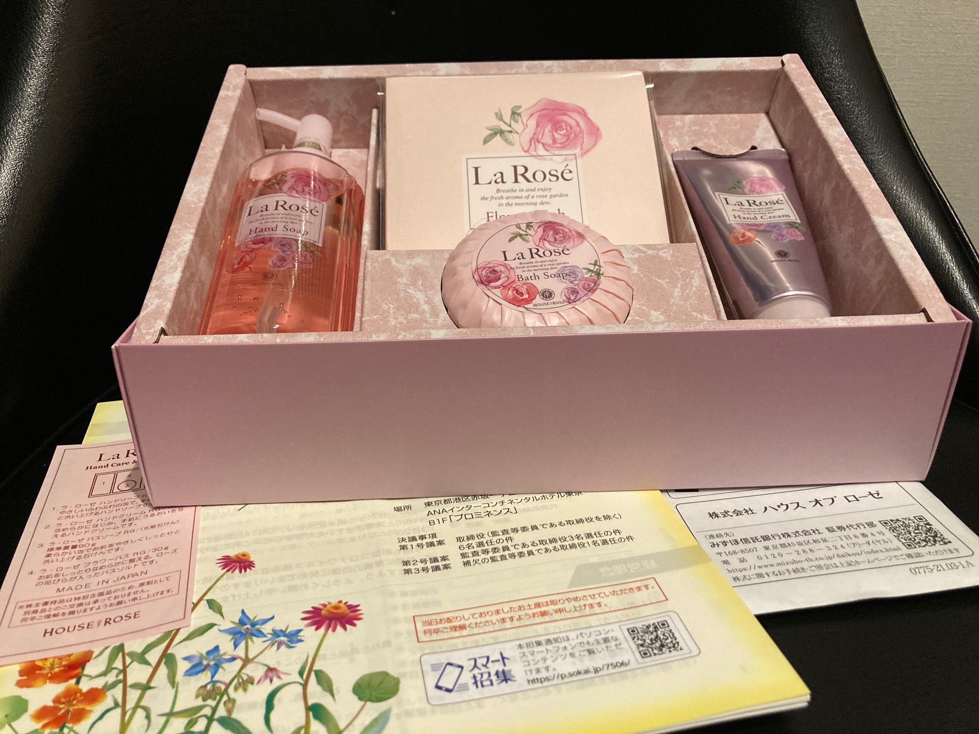 ハウスオブローゼは株主優待制度を導入しており、単元株以上を保有する3月末株主に対して、3,000円相当に自社製品(バス・ボディケアセット等)を進呈しておりますので、配当優待利回りは約3.03%となります。