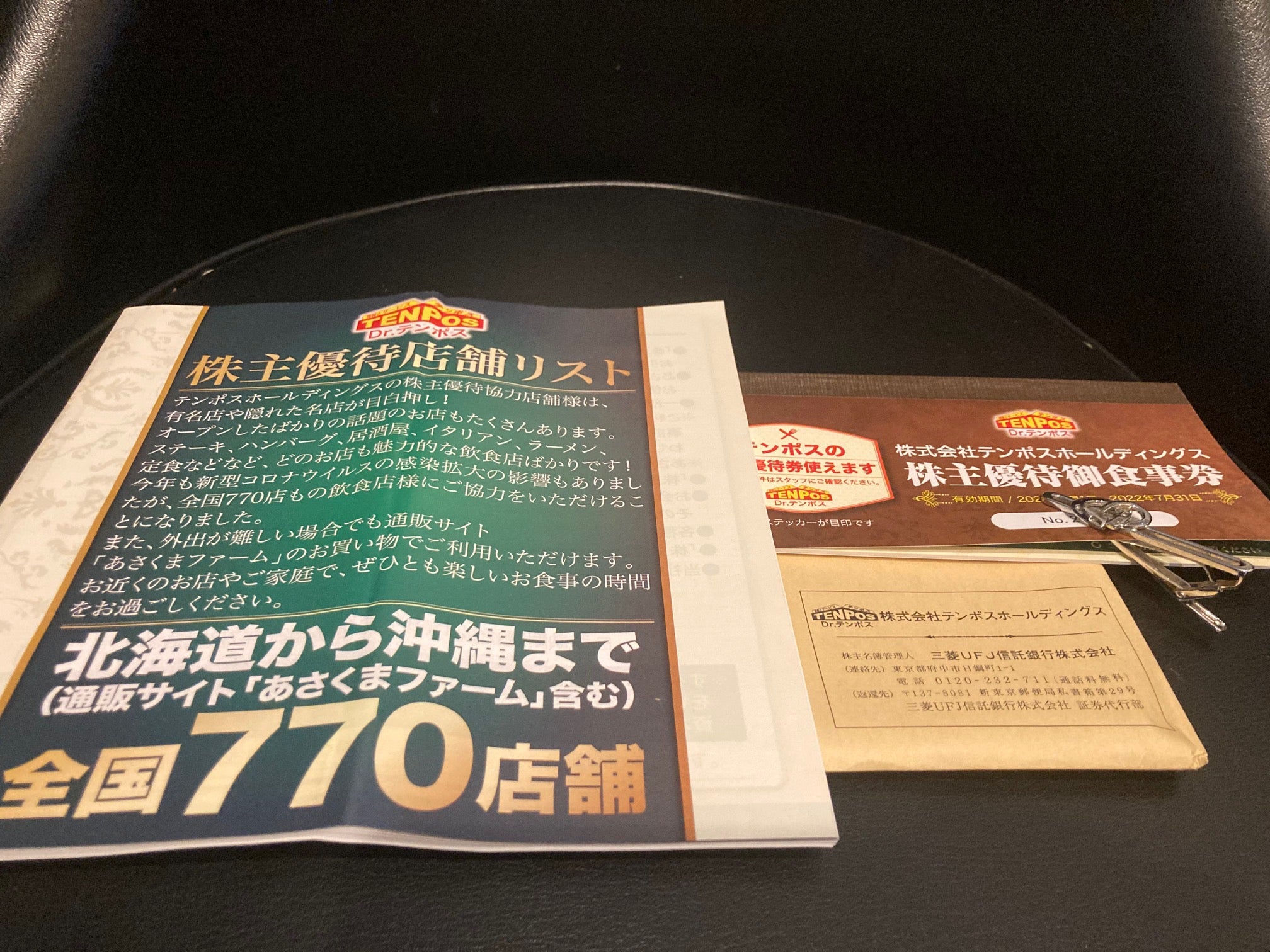 テンポスホールディングスは株主優待制度を導入しておりまして、単元株以上を保有する4月末株主に対し、傘下の「ステーキのあさくま」等で使える8,000円相当の食事券を進呈しておりますので、配当優待利回りは約4.02%となります。