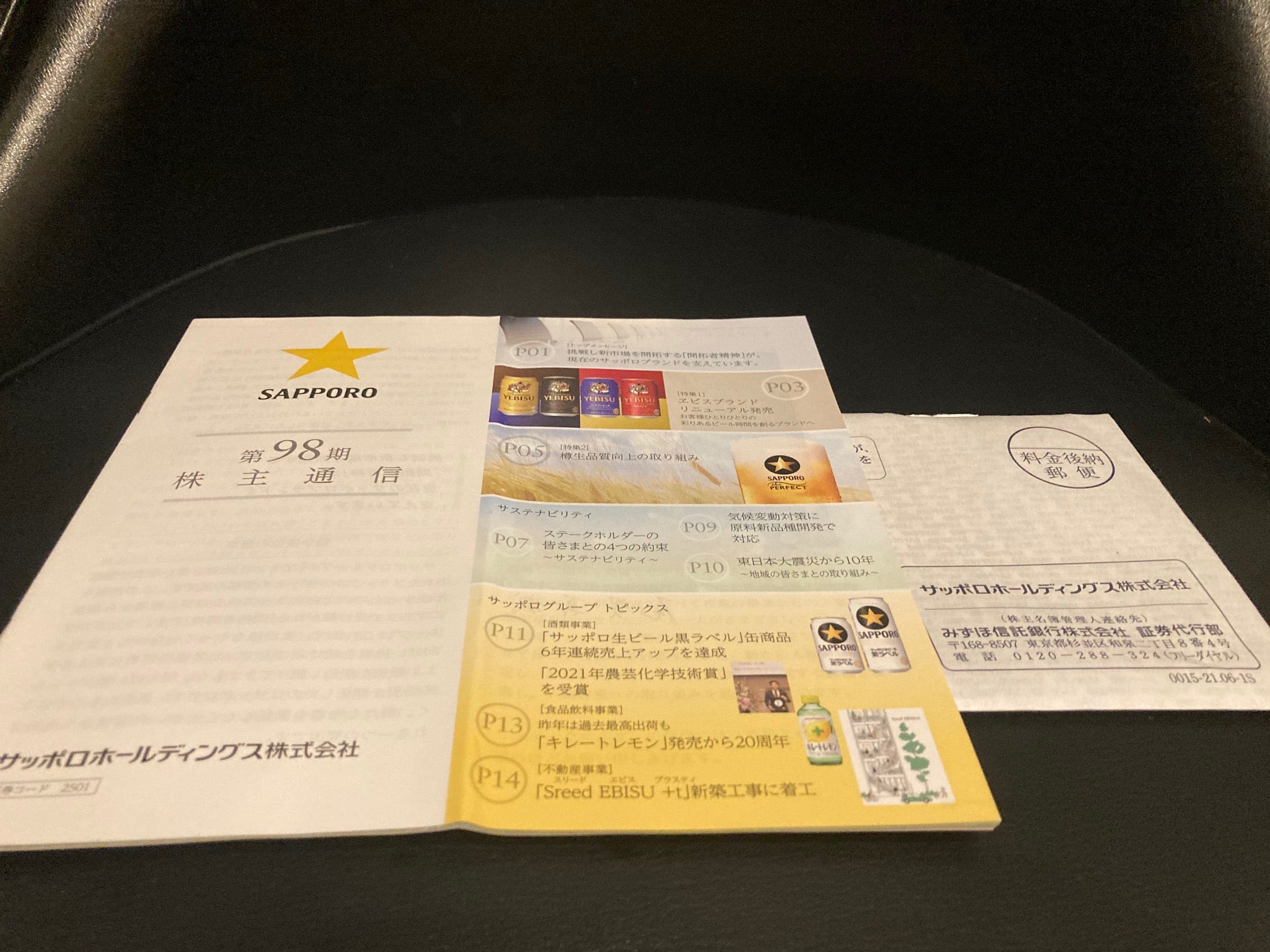 サッポロホールディングスは株主優待制度を導入しており、12月末現在の単元保有の株主に対して、1,000円相当のビールまたは食品・飲料詰め合わせを進呈しておりますので、配当金と合計した配当優待利回りは約2.22%となります。なお、3年以上長期保有した場合は優待品が倍額となりますので、その場合の同利回りは約2.64%となります。