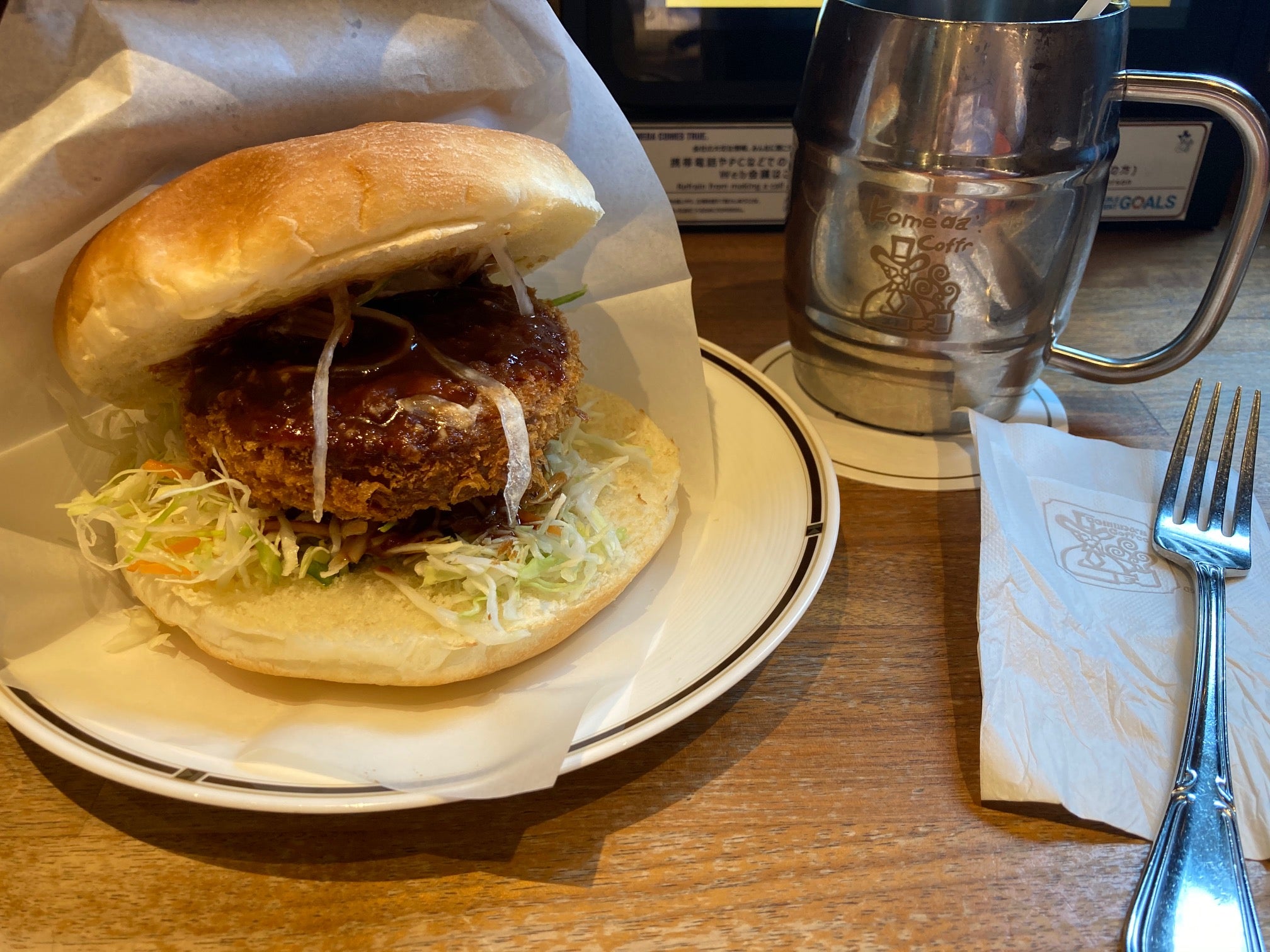 コメダのハンバーガーといえば異様にバンズが大きく、どちらかというとパンを食べておなかが一杯になっているような気分になります。確かな満腹感は得られる一方、大味のわりに値段が高く、なるほどフランチャイジーへの食材卸で稼ぐコメダ珈琲らしい好採算商材だな・・・と主に経営的観点からいつも感心しています(褒めてます)。
