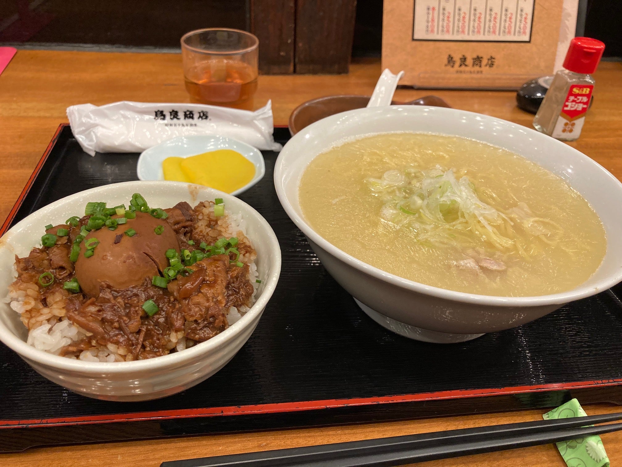 今回はランチ時間帯だったので、「とりそばとどて飯セット/税抜880円」をいただきました。