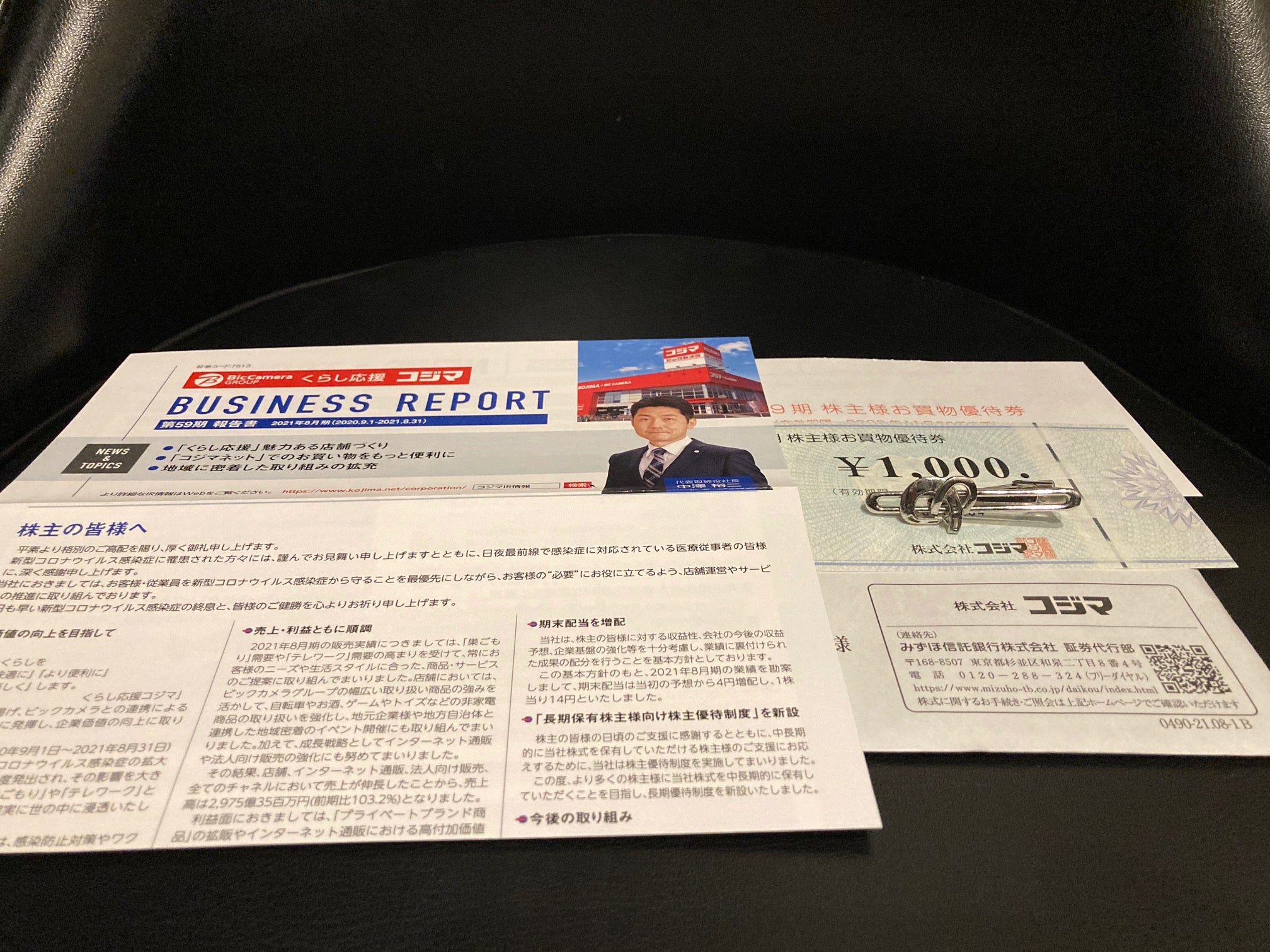 コジマは株主優待を実施しており、8月末に100株以上を保有する株主に対し、年1,000円分の優待券を進呈しておりますので、配当優待利回りは約3.80%となります。なお1年以上の長期保有で+1,000円、2年以上の長期保有で+2,000円が追加されるため、配当優待利回りは最大で約7.60%まで上昇します。