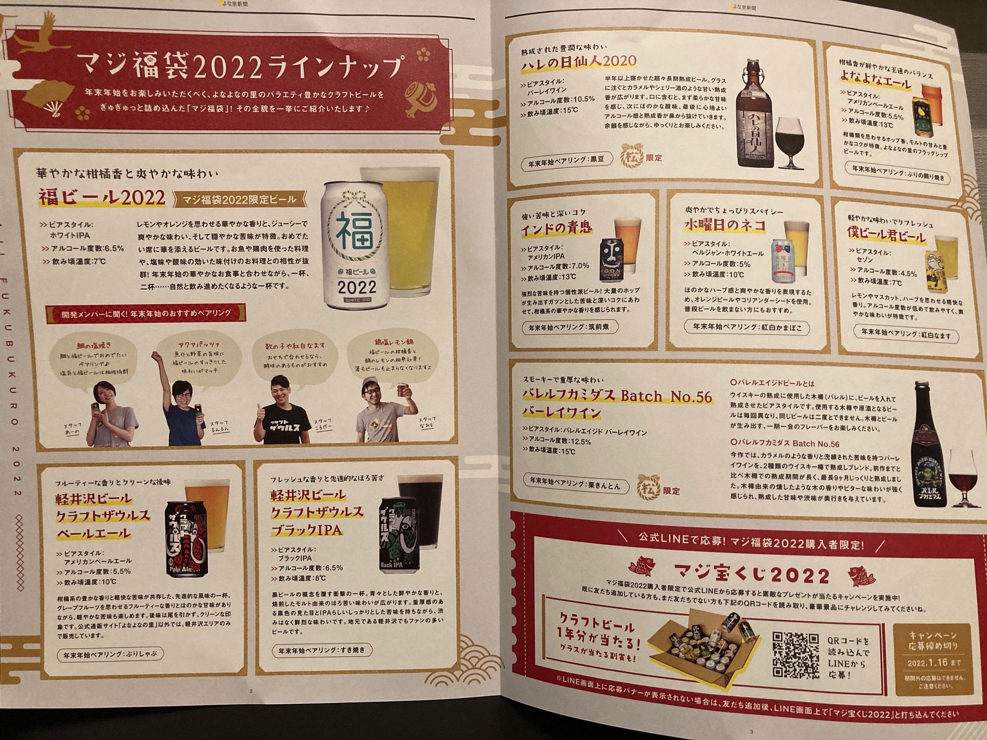 福ビール2022は毎年この福袋のために醸造される限定のビールであり、レモン、オレンジを思わせる柑橘の香りを軸に、「ベルジャン酵母」「オレンジピール」「ホップ」それぞれの特徴を引き出すことで、複雑なフレーバーの中にも一貫した華やかな印象が感じられるビール・・・だそうです(公式サイト原文まま)。実はまだ飲んでないので、この3が日から飲み始めたいと思います。