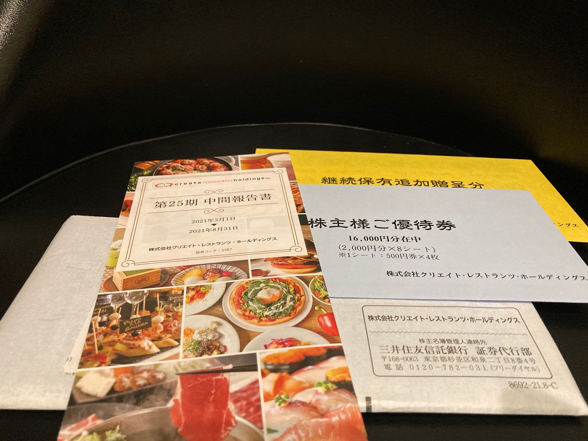 クリエイトレストランツは株主優待制度を実施しており、2月末・8月末に100株を保有する株主に対して、年2回2,000円ずつのお食事券を進呈しておりますので、これらを合算した配当優待利回りは約6.43%となります。なお、400株を1年以上に渡って保有した場合には年2回8,000円ずつの進呈となりますので、400株保有の場合に限り表記の配当優待利回りを維持出来ます。