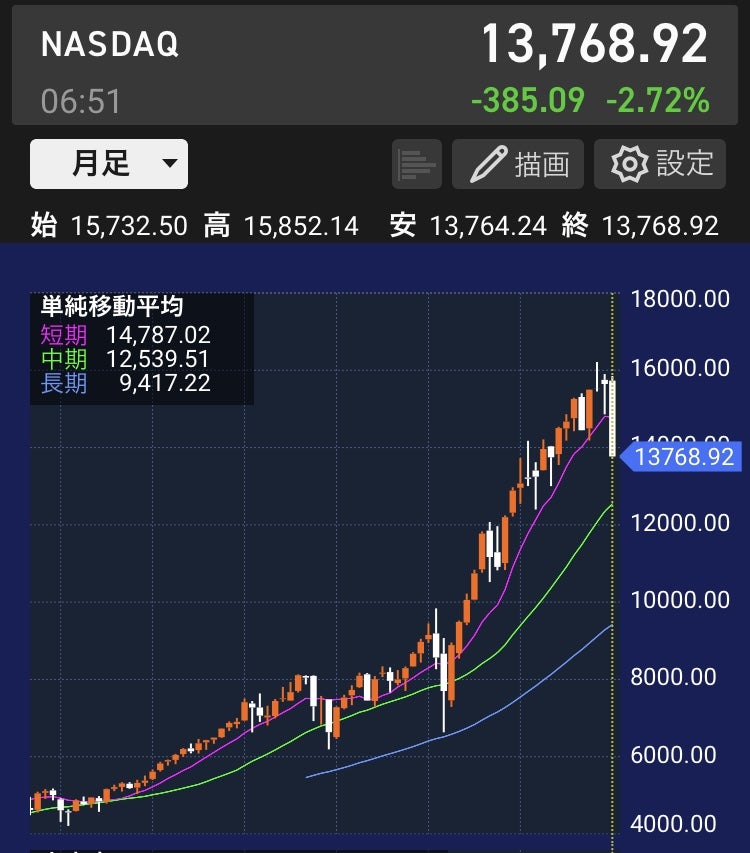 1月20日に決算を発表したNetflixがその内容もさることながら、契約者数見通しが予想を大幅に下回って、株価が僅か1日で2割強下落しました。シンボル株であるNetflixの急ブレーキにより、ハイグロース株のセンチメントが冷え込み、NASDAQは金曜終値で節目の14,000を割り込んでしまいました。また、FRBの引き締めにより金利もジリジリあがっており、NYダウの方も調整色が濃くなっており、底が一段と見えにくくなってきました。