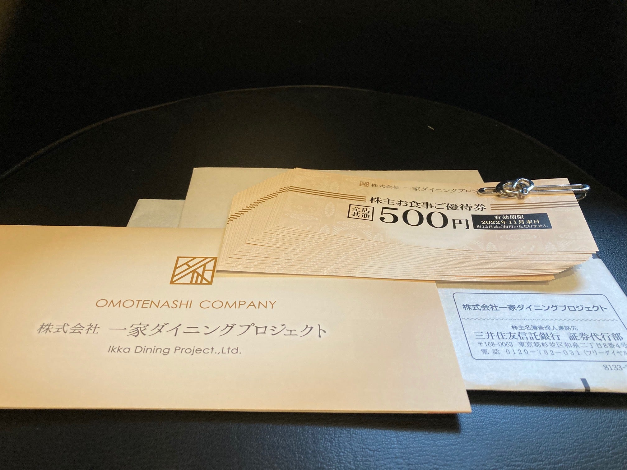一家ホールディングスは株主優待を導入しており、3月末・9月末に単元株を保有する株主に対し、各2,500円の食事券を進呈しておりますので、配当優待利回りは約9.54%となります。