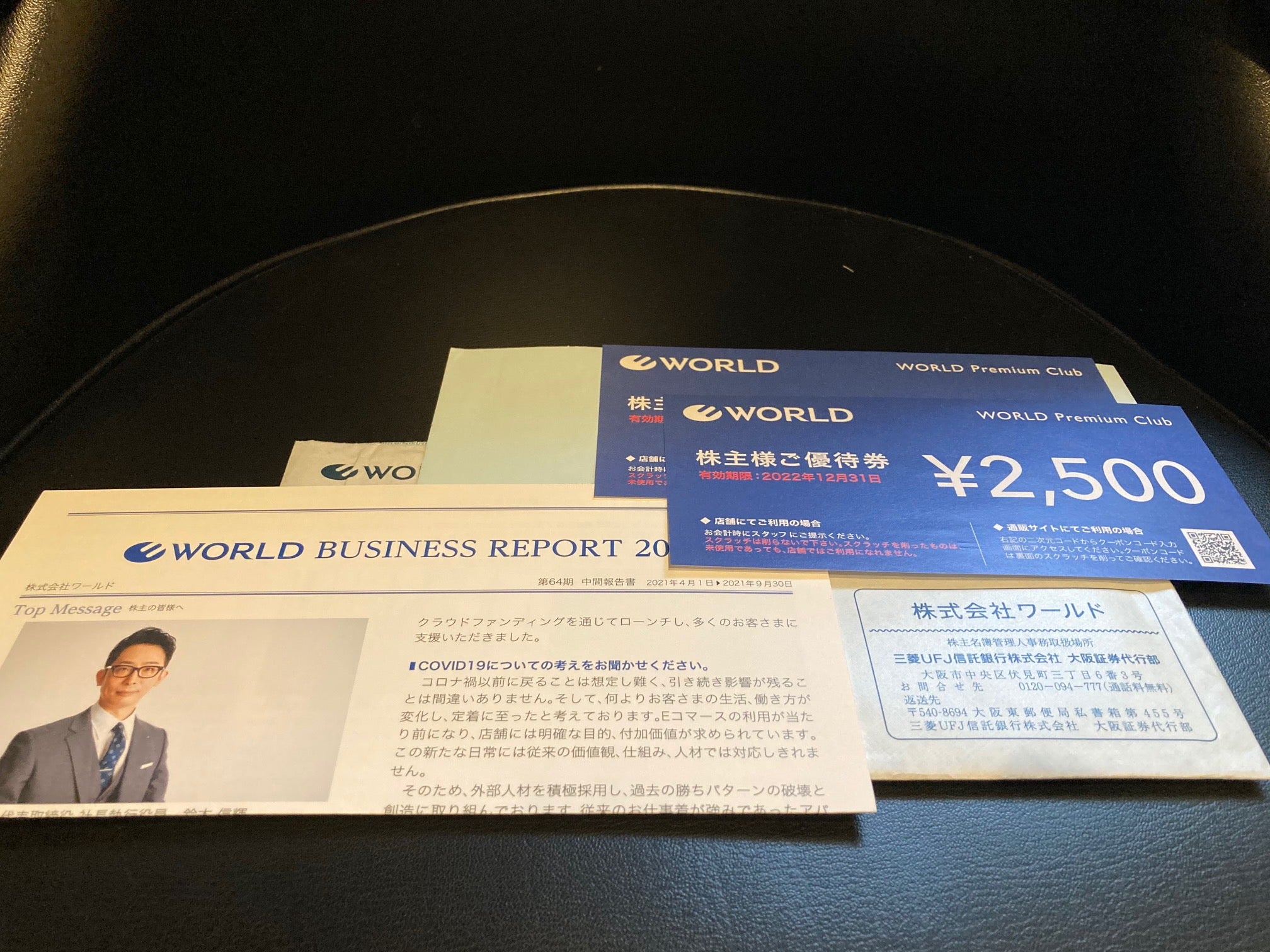 ワールドは株主優待制度を実施しており、3月末・9月末時点で半年以上保有を継続する単元株主に対して、1,500円分の商品券を進呈しておりますので、配当優待利回りは約4.65%となります(なお3単元保有時は優待が5,000円分となるため、利回りが上昇します)。