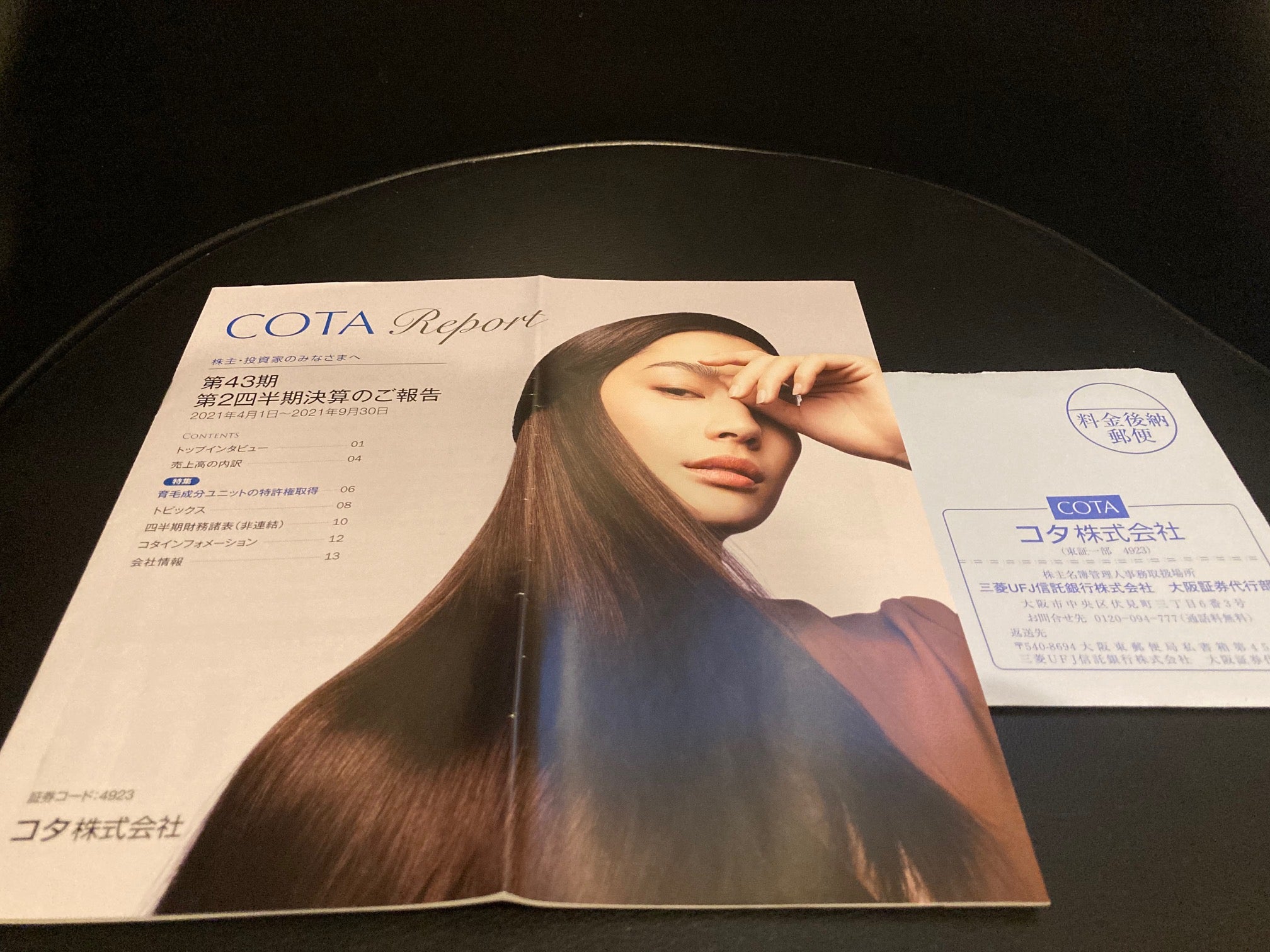 コタは株主優待制度を実施しており、3月末の単元株主に対して5,000円相当の自社製品を進呈しておりますので、配当優待利回りは約4.33%となります。