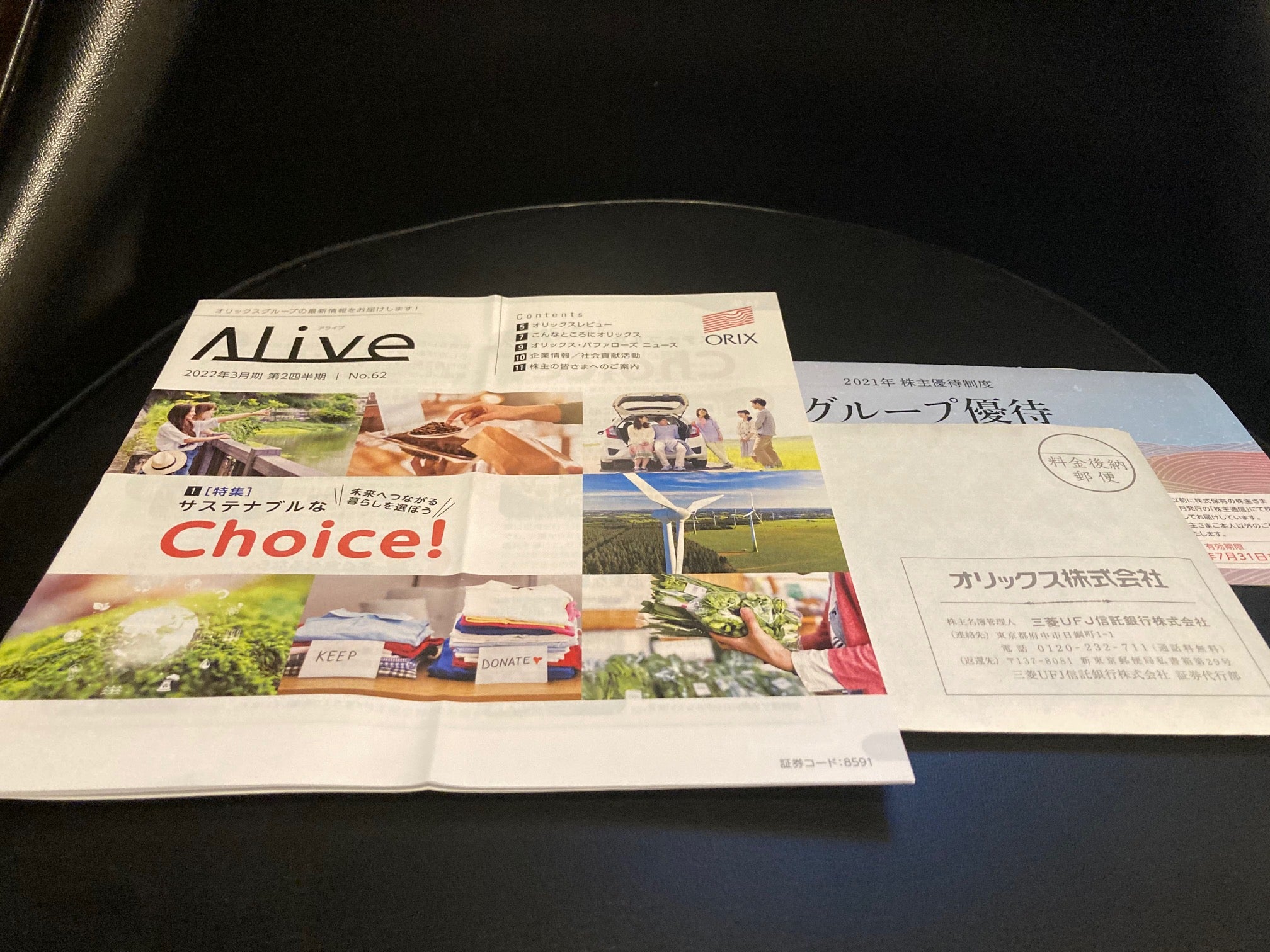 オリックスは株主優待制度を実施しており、3月末に単元以上を保有する株主に対して、5,000円分のカタログギフトを進呈しておりますので、配当優待利回りは約5.48%となります。なお、3年以上保有の場合は進呈額が倍になりますので、同利回りは約7.62%となります。また別途、当社施設等でのサービスが受けられる株主優待カードも進呈しています。