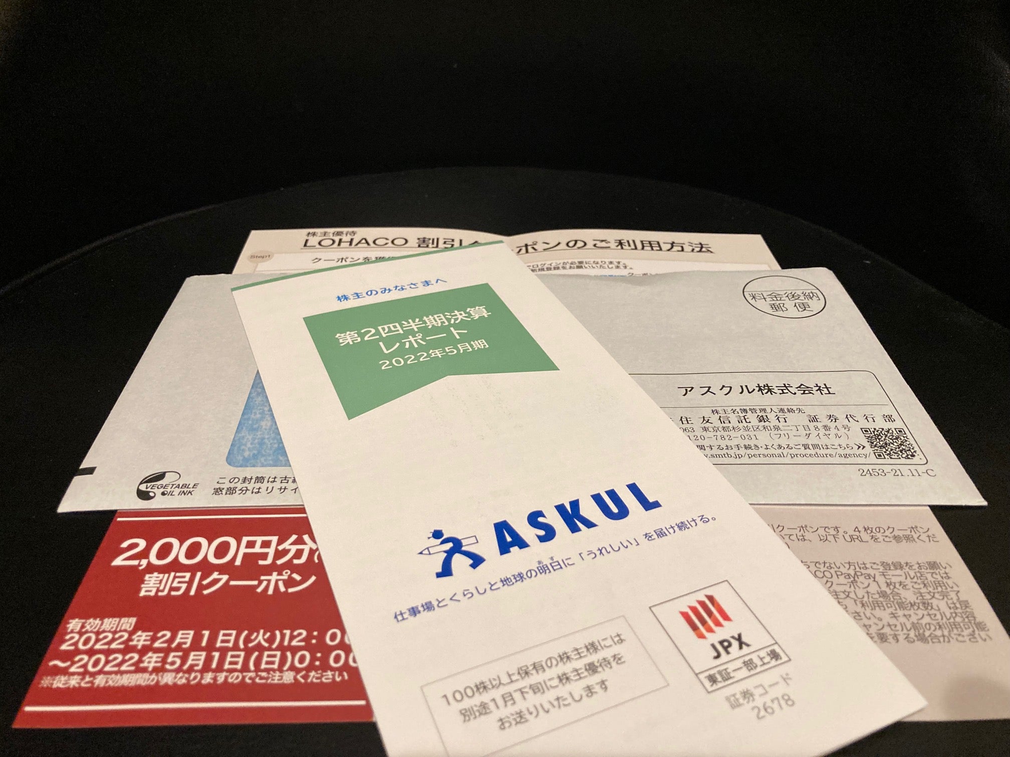 アスクルは株主優待制度を導入しており、5月末・11月末の株主に対して、2,000円分のクーポン(※買上500円超につき、500円使用可)を進呈しているため、配当優待利回りは4.22%となります。