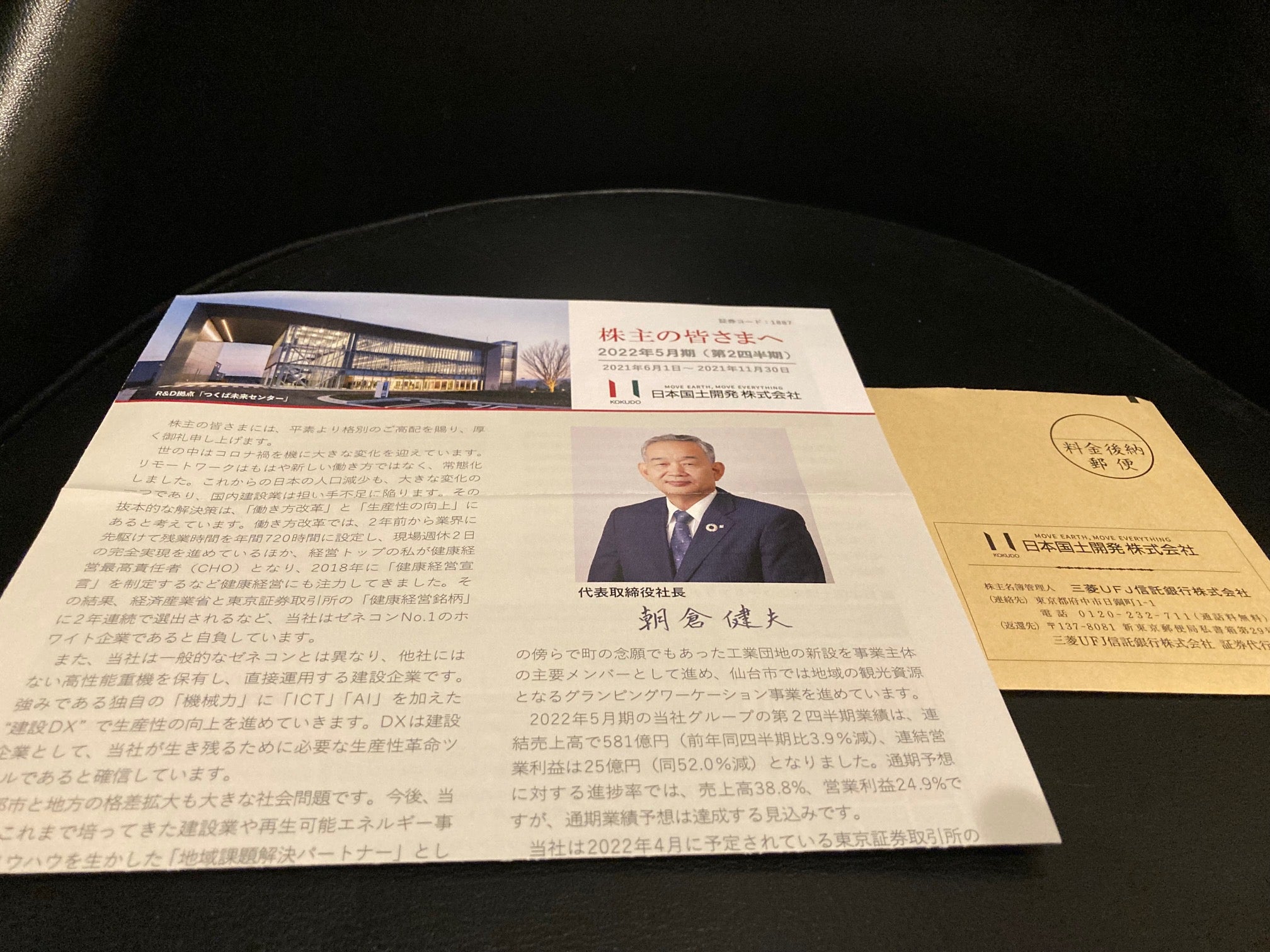 配当金は5月末・11月末の年2回の合計26円で、配当利回りは4.73%となります。