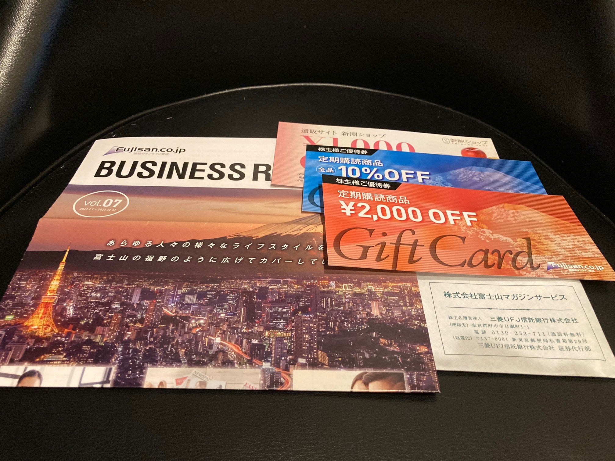 富士山マガジンサービスは株主優待として12月末の単元株主に対し、2,000円分の割引クーポン(※10,000円以上の定期購読で使用可)進呈しているため、優待利回りは約2.50%となります。