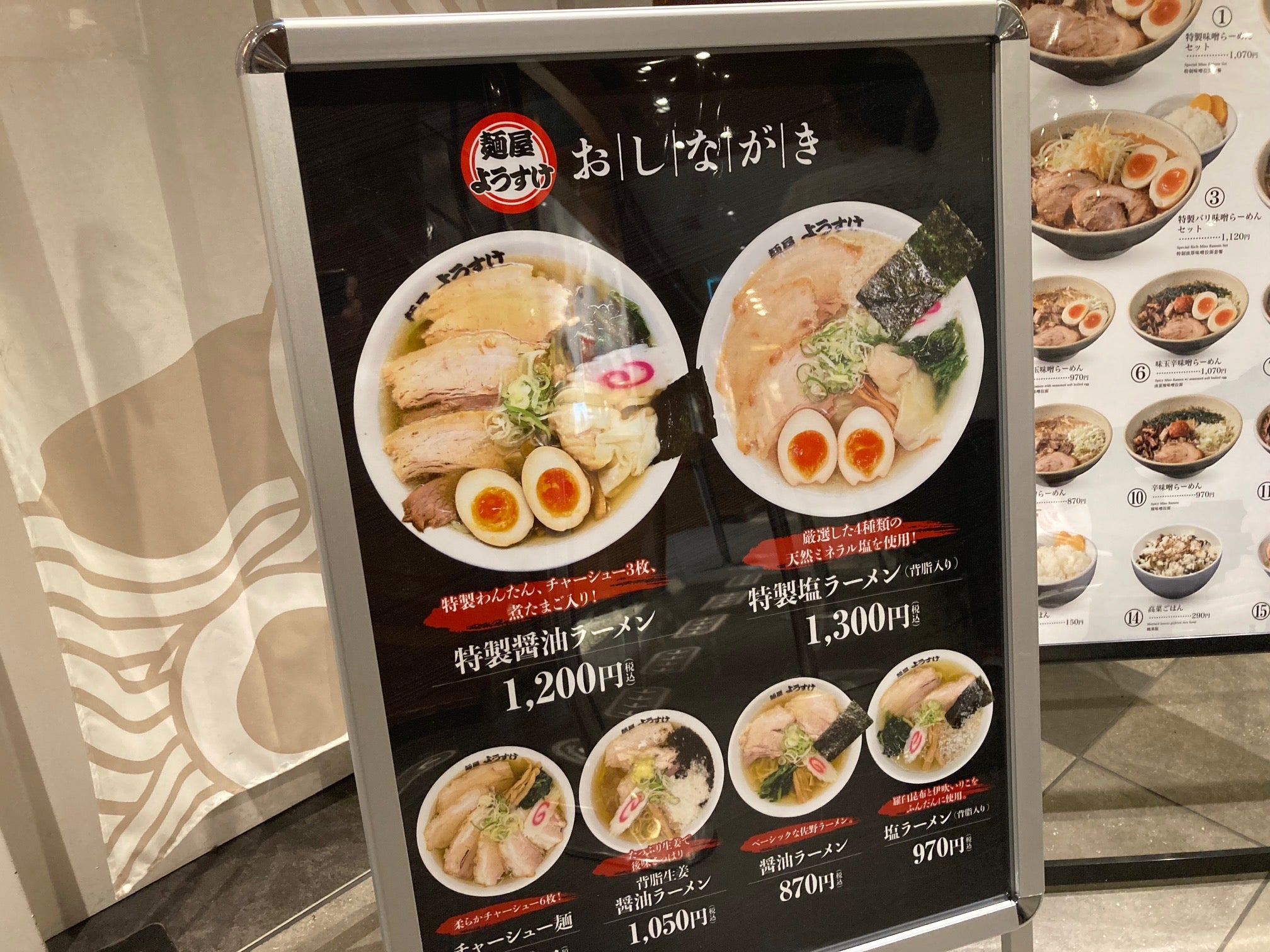 さて今回はJR・東京メトロ各線東京駅、徒歩2分の「麺屋ようすけ」に行ってきました。場所はJRの八重洲地下中央口を出て右折し、そのまま地下商店街を進むと程なくして現れるラーメン街区「東京ラーメンストリート」内にあります。なお、立ち食いそば店ではなくラーメン店のご紹介となります。