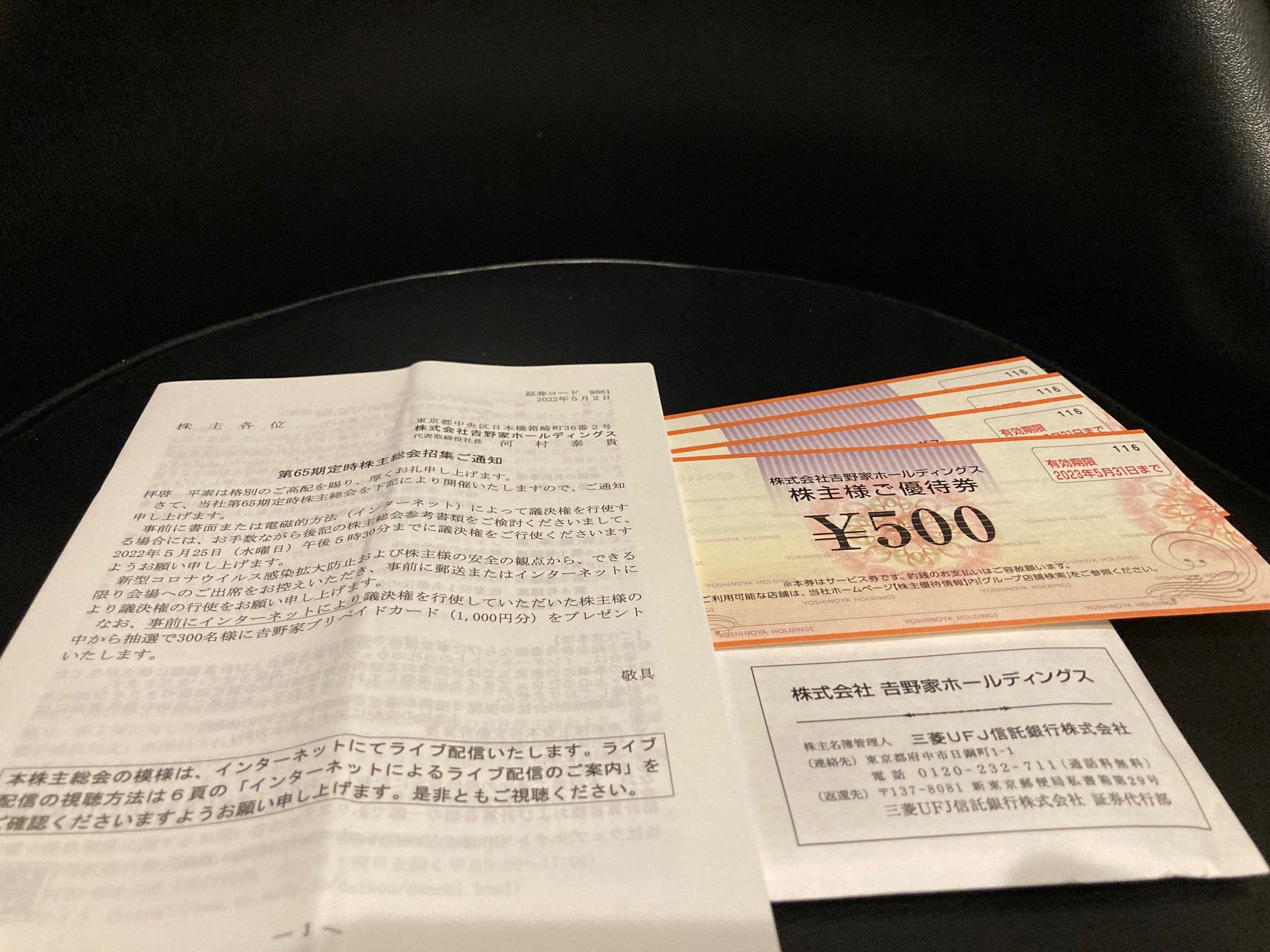 吉野家ホールディングスは株主優待として、2月末・8月末に100株以上を保有する株主に対して2,000円分の食事券を進呈しておりますので、配当優待利回りを算出した場合、約2.00%となります。