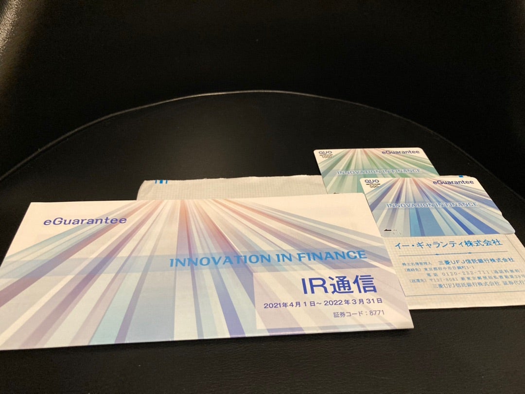 イー・ギャランティは株主優待制度を導入しており、3月末に単元株を保有する株主に対し、1,500円分のクオカードを進呈しておりますので、配当優待利回りは約1.70%となります。