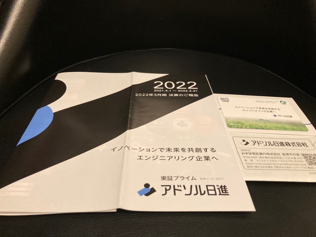 アドソル日進は株主優待制度を導入しており、3月末・9月末時点で200株以上を保有する株主に対して、500円分のクオカードを進呈しておりますので、配当優待利回りは約2.86%となります。なお長期優遇制度もあり、1年以上の保有で500円分のクオカードが追加進呈されますので、その場合の配当優待利回りは、約3.20%まで利回りが上昇します。