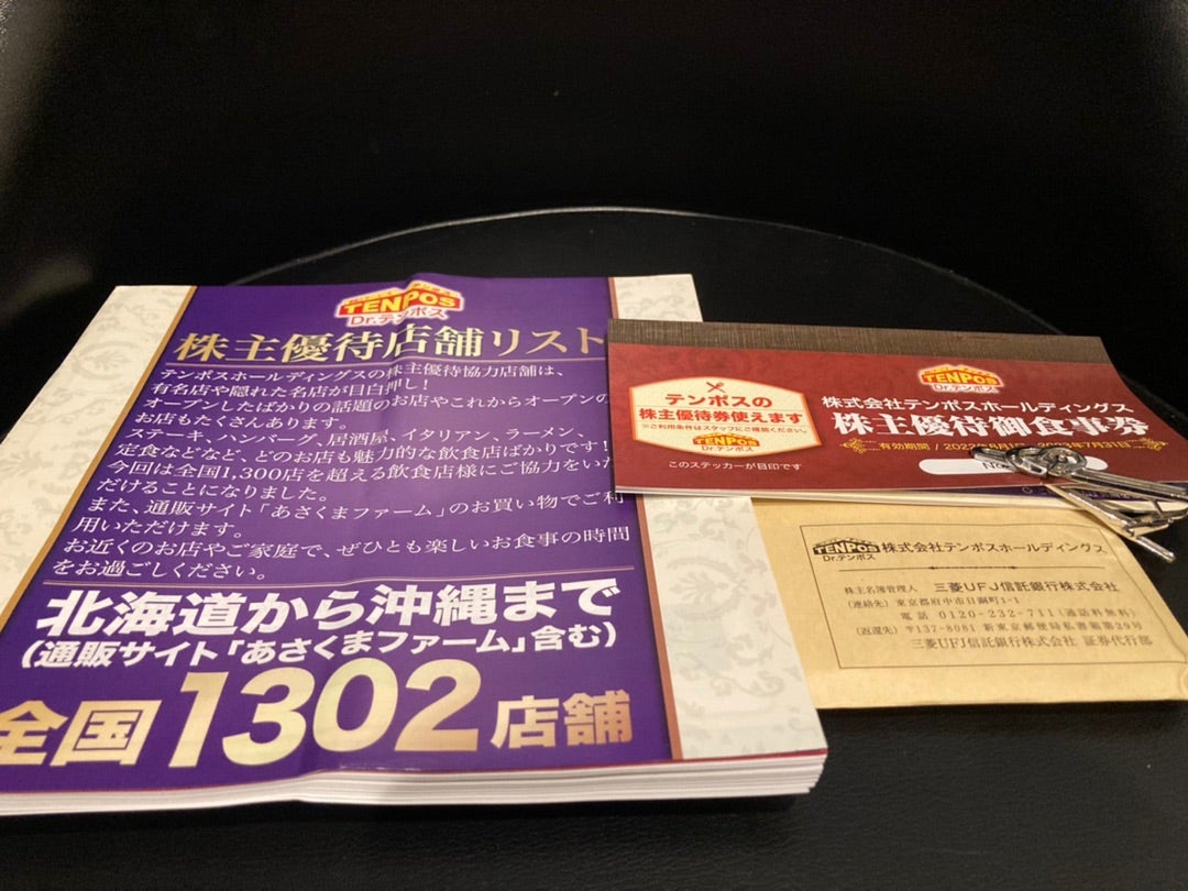 テンポスホールディングスは株主優待制度を導入しておりまして、単元株以上を保有する4月末株主に対し、傘下の「ステーキのあさくま」等で使える8,000円相当の食事券を進呈しておりますので、配当優待利回りは約3.98%となります。