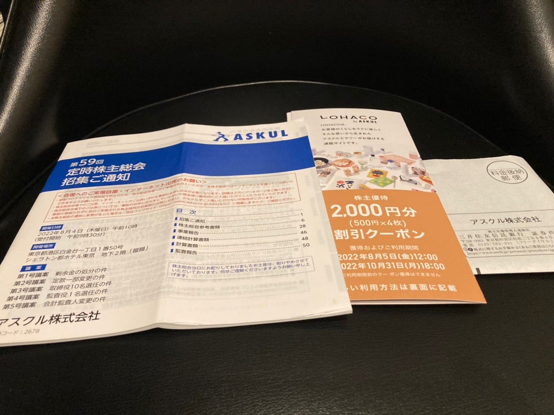 アスクルは株主優待制度を導入しており、5月末・11月末の株主に対して、2,000円分のクーポン(※買上500円超につき、500円使用可)を進呈しているため、配当優待利回りは約4.66%となります。