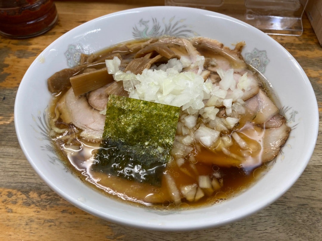 麺は自家製で卵麺と国産そば粉入り中華麺の2種から選択可能です。今回は初訪店のため卵麺を選択しましたが、中細打ち・ストレートのスタンダードな麺でした。スープはスッキリ系の醤油味で、刻み玉ねぎ・メンマ・海苔が添えられていることから所謂“八王子ラーメン“に近いお味です。チャーシューもほろほろして美味しかったです。