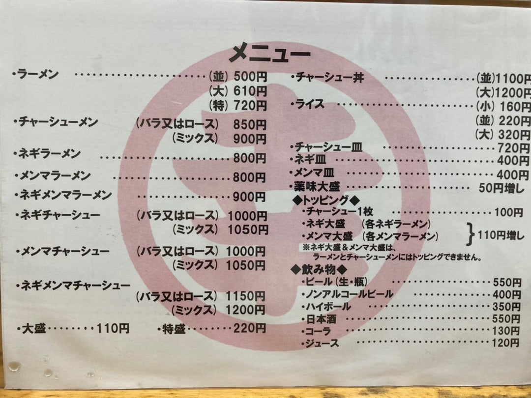 他のメニューはこんな感じです。今回は贅沢してチャーシュー麺にしたのですが、普通のラーメンなら税込500円です。かなりの高コスパだと思います。