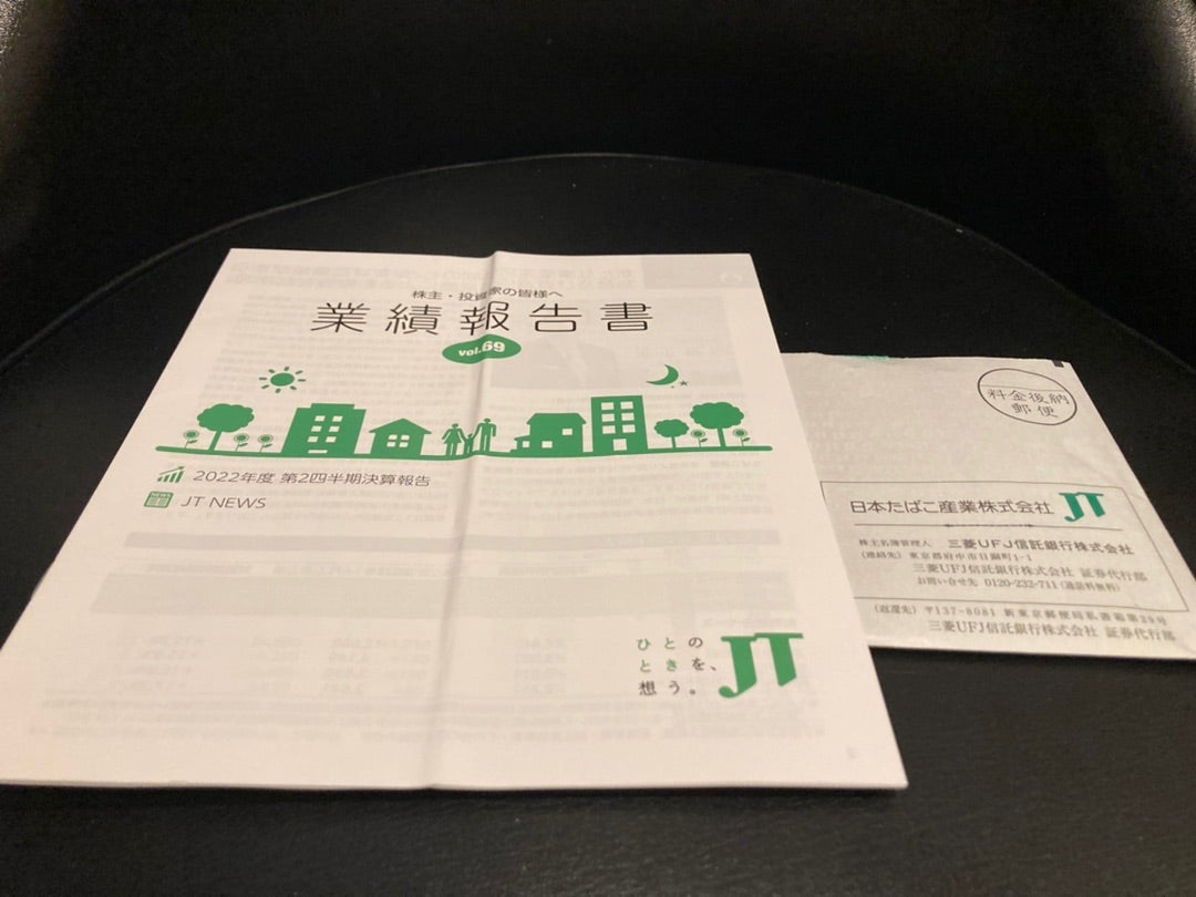 JTは株主優待制度を導入しており、1年以上単元株を保有する単元株主に対して、2,500円分の自社製品を進呈しておりますますが、2022年12月度の進呈を以って制度終了となります。