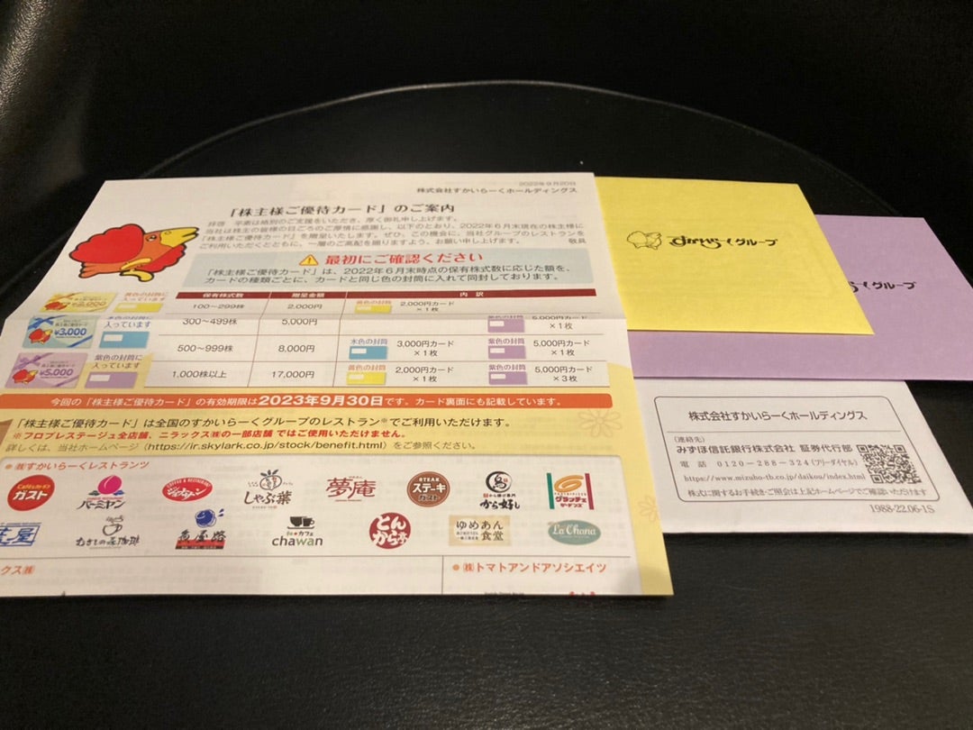すかいらーくは株主優待として6月末・12月末の単元株主に対し、2,000円分のお食事券を年2回進呈しているため、優待利回りは約2.51%となります。なお、1,000株までは持株数に応じた優待券がほぼ正比例で追加されます。
