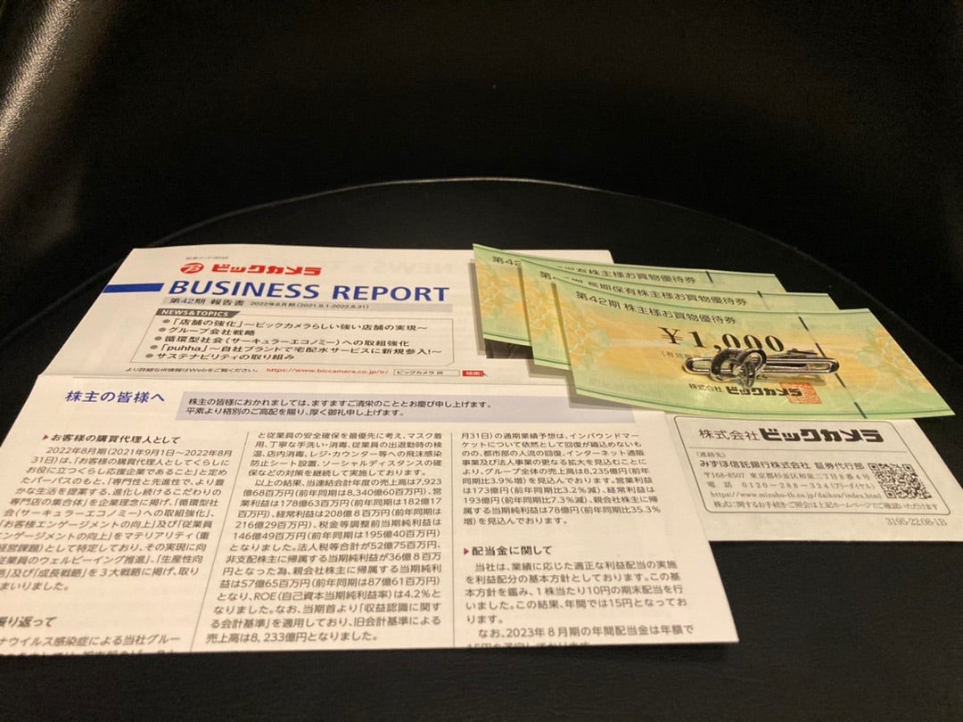ビックカメラは株主優待を実施しており、2月末・8月末に100株以上を保有する株主に対し、年3,000円分の優待券を進呈しておりますので、配当優待利回りは約3.60%となります。なお1年以上の長期保有で+1,000円、2年以上の長期保有で+2,000円が追加されるため、配当優待利回りは最大で約5.20%まで上昇します。