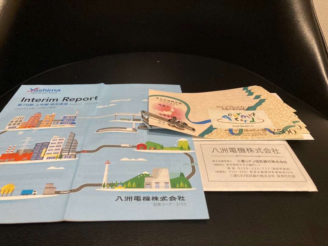 八洲電機は株主優待を導入しており、9月末現在の100株以上保有の株主に対して、500円分のジェフグルメカードを進呈しておりますので、配当優待利回りは約2.77%となります。なお、1年以上保有を継続する株主に対しては500円分が追加されますので、配当優待利回りは約3.24%となります(※2単元の場合は変則優待:2,000円分、1年超で2,500円分、3年超で3,000円分)