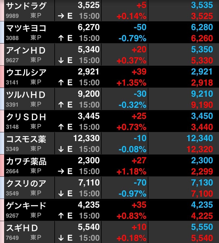 逆に対抗級として〇を付与した2銘柄は、サンドラッグ(+17.3%)、カワチ薬品(+8.6%)とウエルシアより伸びました。サンドラッグは都心店が多いためインバウンドの回復期待、食品割合の多い北関東のカワチはウエルシア同レベルのパフォーマンスになったのかなと思います。