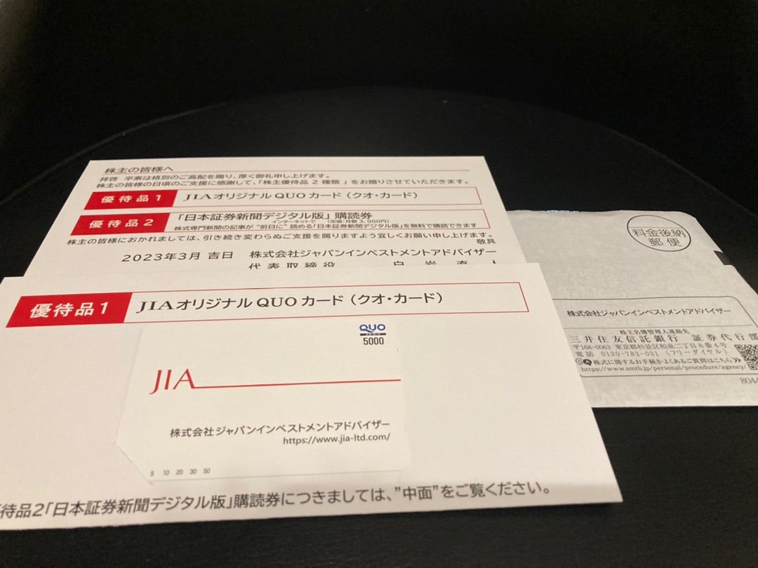 ジャパンインベストメントアドバイザーは株主優待を導入しており、12月末に単元株を保有する単元株主に対して、保有期間に応じて日本証券新聞のデジタル版購読券を進呈しています。また1年超・2年超・3年超保有で別途クオカード進呈もあり、各500円分・1,000円分・3,000円分となるため、その場合の配当優待利回りについてはそれぞれ約3.30%・約3.75%・約5.54%となります。