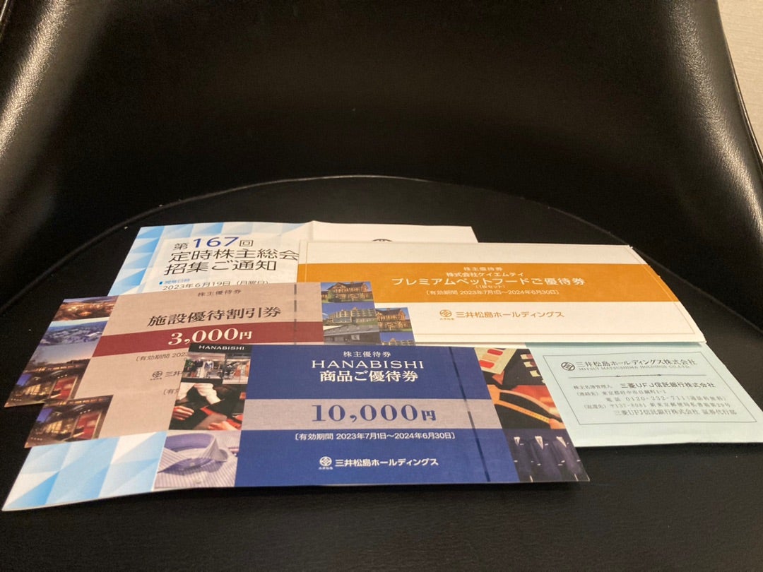 三井松島産業は株主優待制度を実施しており、3月末に単元株を保有する株主に対して、6,000円分の自社運営宿泊施設の宿泊割引券と10,000円分のオーダースーツ等お仕立券を進呈しておりますので、宿泊券のみ計算した場合の配当優待利回は約5.23%となります。