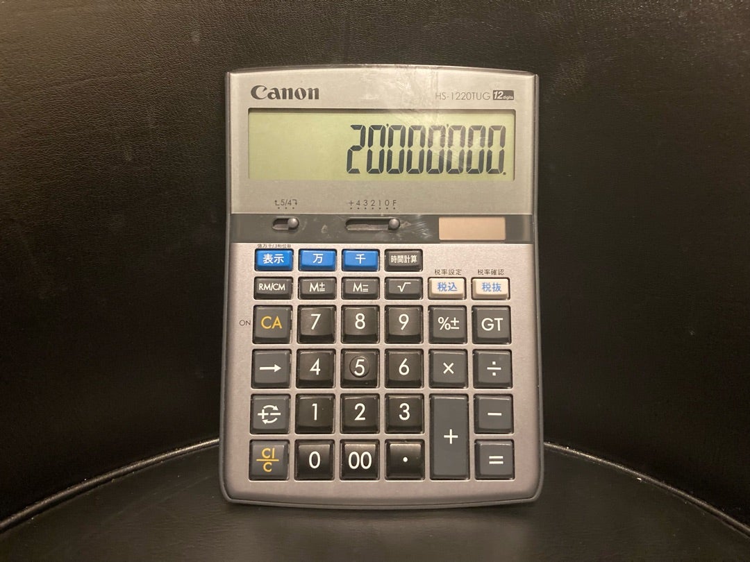 (*写真は私の愛用しているキヤノンの電卓です。会計業界ではシャープ派、カシオ派が電卓の二大宗教ですが、最初に買ったのがたまたまキヤノンなのでずっとキヤノン派です)
