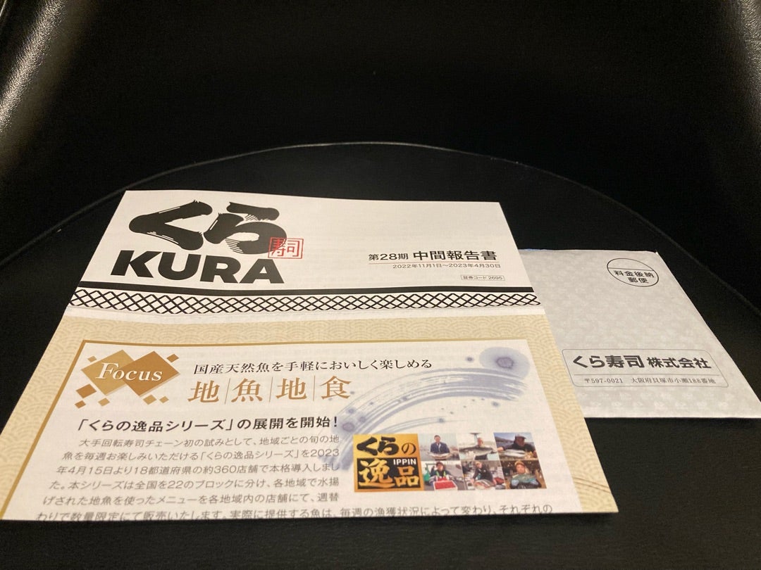 くら寿司は株主優待制度を導入しており、4月に単元株以上を保有する株主に対し、アプリ利用を前提に5,000円分のクーポン(※1,000円につき500円利用可)を進呈しておりますので、配当優待利回りは約2.15%となります。