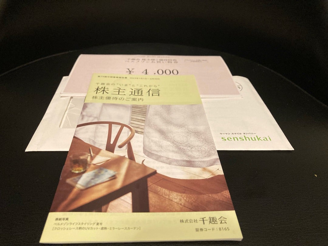 千趣会は株主優待制度を導入しており、6月・12月末に100株以上を保有する株主に対して各回1千円分の商品券進呈していますので、(配当)優待利回りは約4.98%となります。なお長期保有により1年あたり500円ずつ商品券が加算されるため、3年以上の保有で約11.2%の利回りが確保できます。