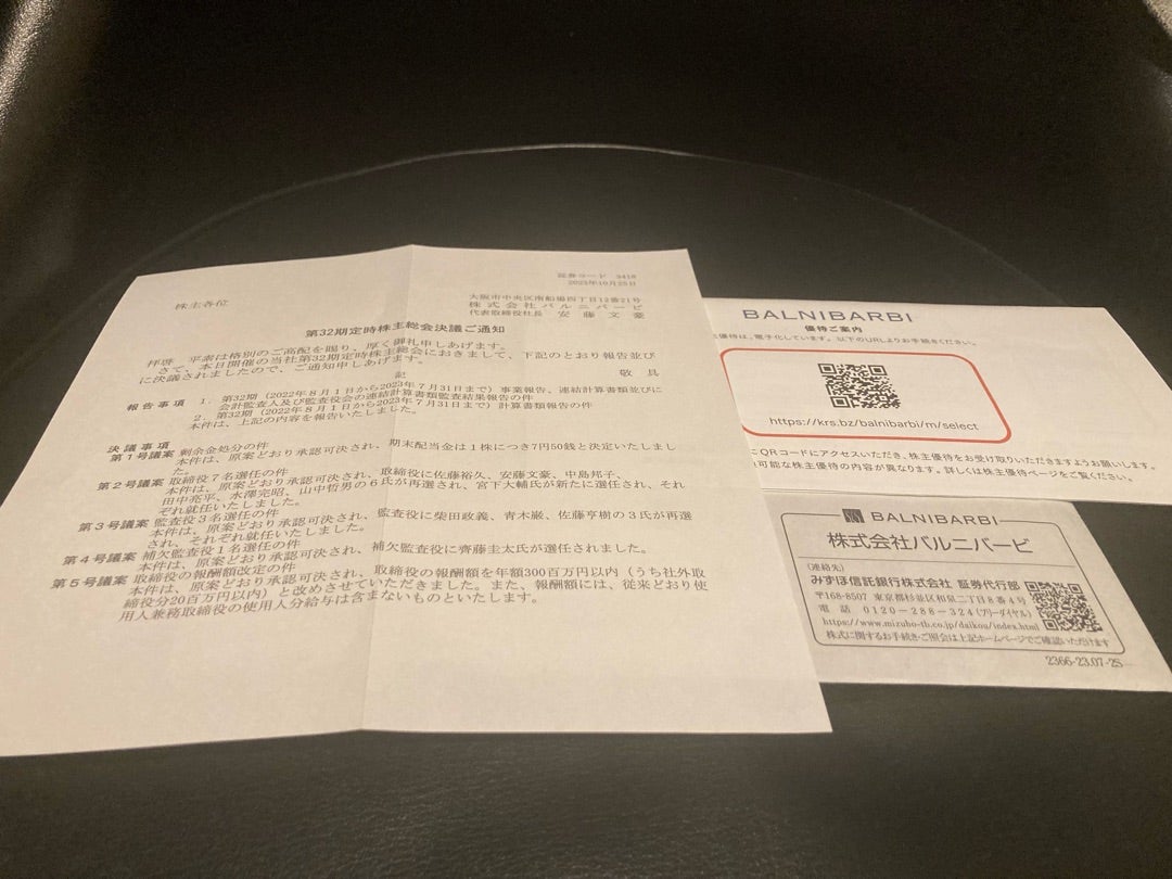 バルニバービは株主優待制度を実施しており、7月末に単元株を保有する株主に対して3,000円分の優待券を進呈していますので、配当優待利回りは約3.29%となります。なおこの他に長期優遇制度として、店舗での割引や限定のイベントに参加出来るメンバーシップ制度が用意されています。