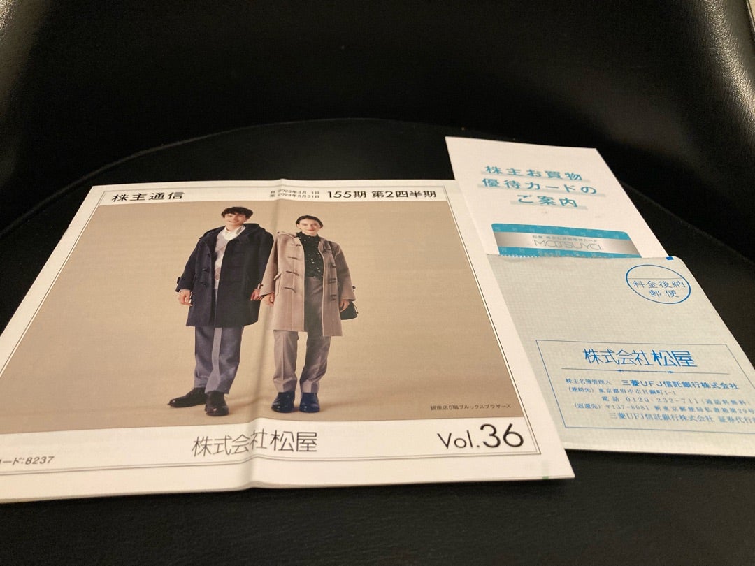 松屋は株主優待制度を実施しており、100株以上を保有する2月末・3月末株主に対して、利用上限のない10%割引買物カードを進呈しております。また、有料の催事が2人分まで無料になりますので、入場料1,000円の催事に2人で年1回行った場合の配当優待利回りを算出すると、およそ約2.48%となります。
