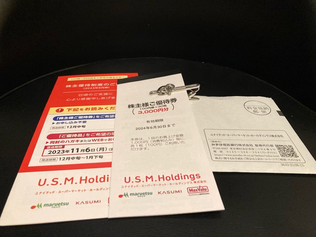 ユナイテッド・スーパーマーケット・ホールディングスは株主優待制度を実施しており、2月末・8月末時点で単元株を保有する株主に対して3千円相当の買い物割引券等を年2回進呈しておりますので、配当優待利回りは約7.53%となります。