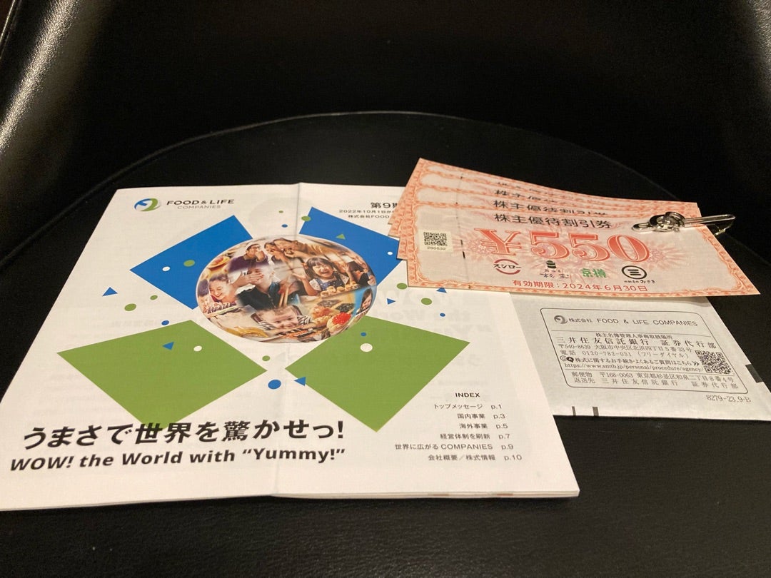 FOOD&LIFE COMPANIESは株主優待制度を実施しており、3月末・9月末時点で100株保有する株主に対して、年2回1,100円分の自社割引券を進呈しておりますので、配当優待利回りは約1.43%となります。
