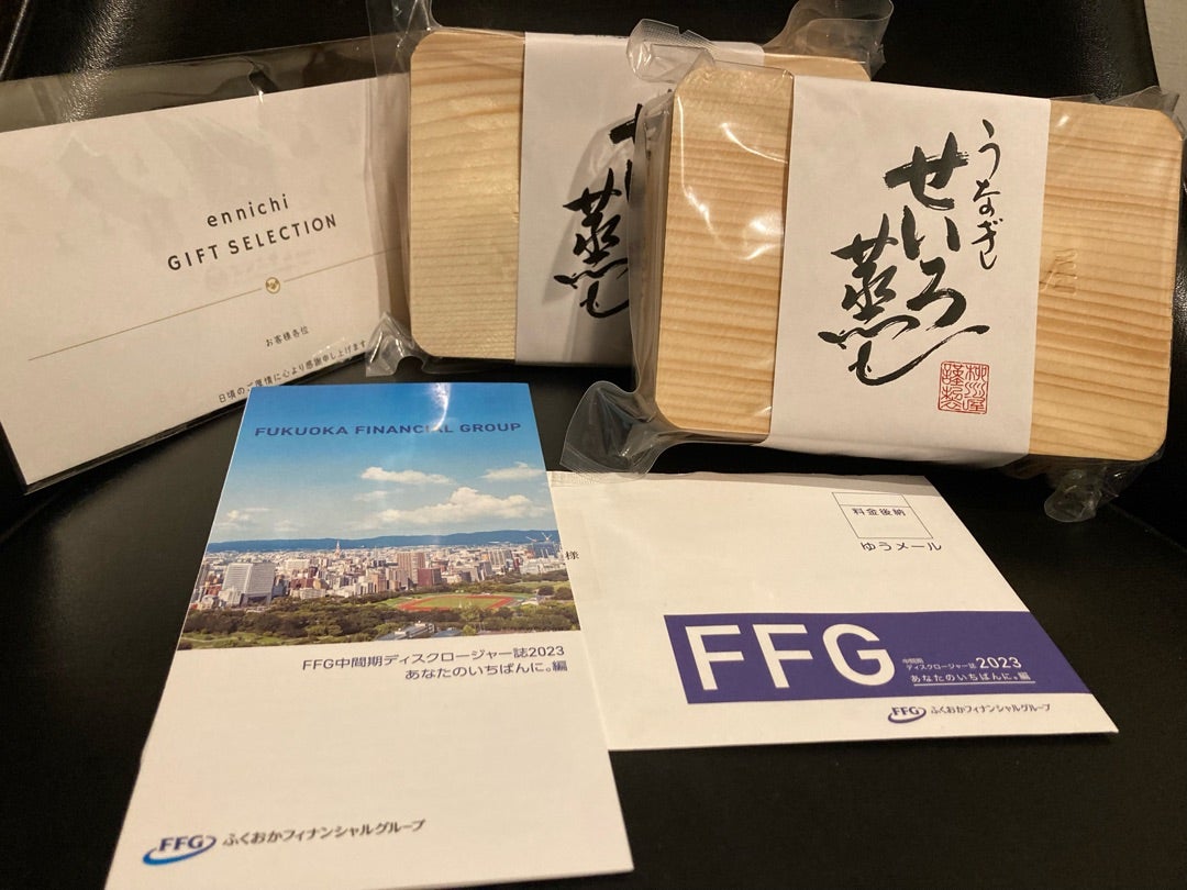 ふくおかフィナンシャルグループは株主優待制度を導入しており、200株以上保有の1年以上株主に対して、預金金利上乗せやポイント進呈等の各種サービスクーポン、ご当地ギフトを進呈しており、3,000円換算した場合の配当優待利回りは約3.48%となります。