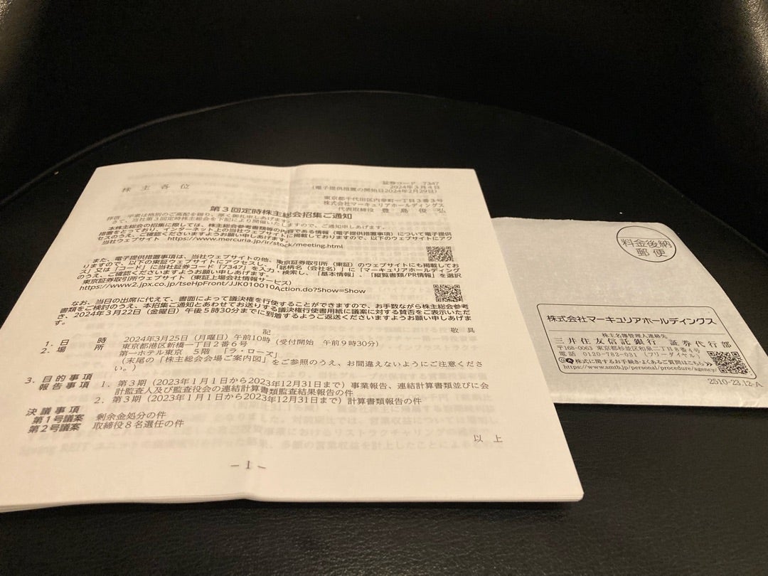 なお、マーキュリアインベストメントは株主優待制度を導入しておりません。
