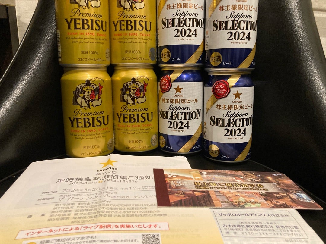 サッポロホールディングスは株主優待制度を導入しており、12月末現在の単元保有の株主に対して、1,000円相当のビールまたは食品・飲料詰め合わせを進呈しておりますので、配当金と合計した配当優待利回りは約1.11%となります。なお、3年以上長期保有した場合は優待品が1.5倍となりますので、その場合の同利回りは約1.20%となります。