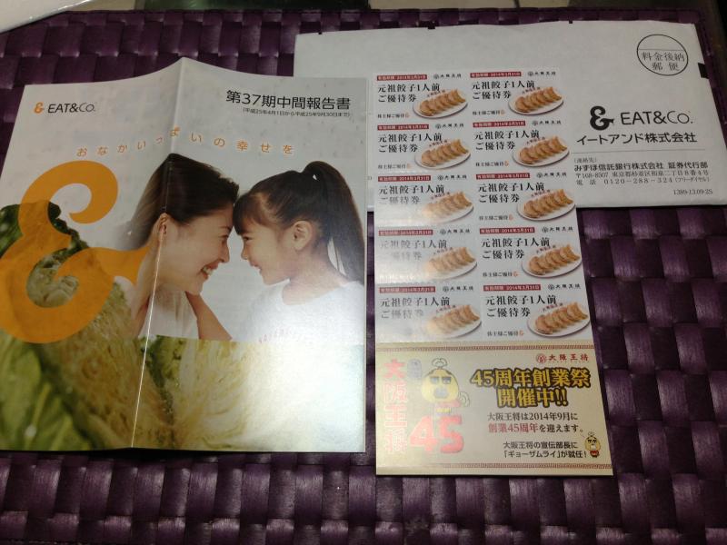 閑話休題、9月に新設された当社の株主優待の餃子無料券を握り締めて