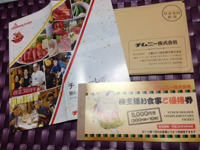 TOBで株数を落としたチムニー(3178)から株主優待が来ました!