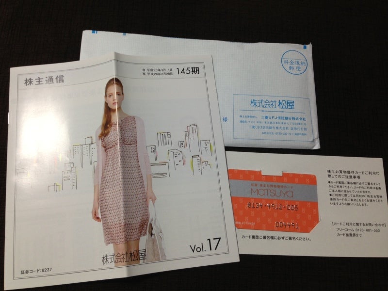 業績好調で後出し復配!松屋(8237)から株主優待カードがきました。