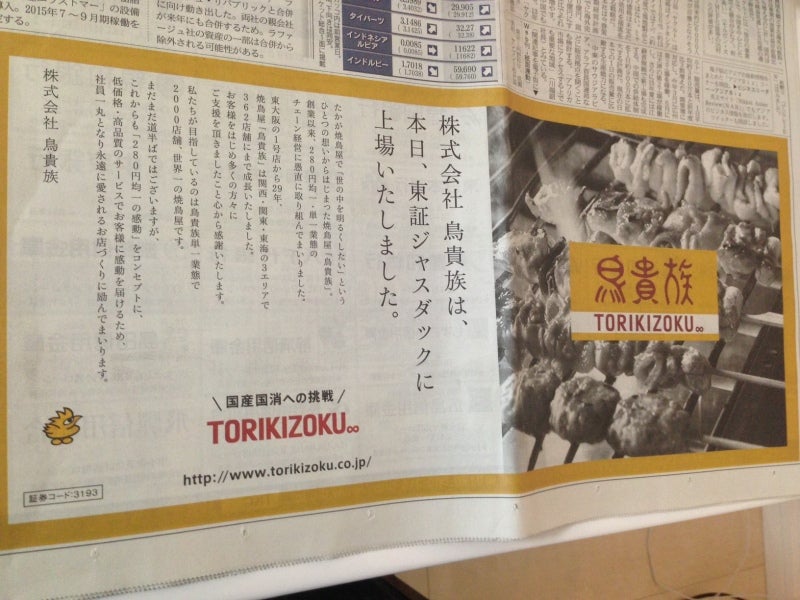 *参考記事 2014-04-21 7月権利!株主優待が期待される鳥貴族が上場承認!